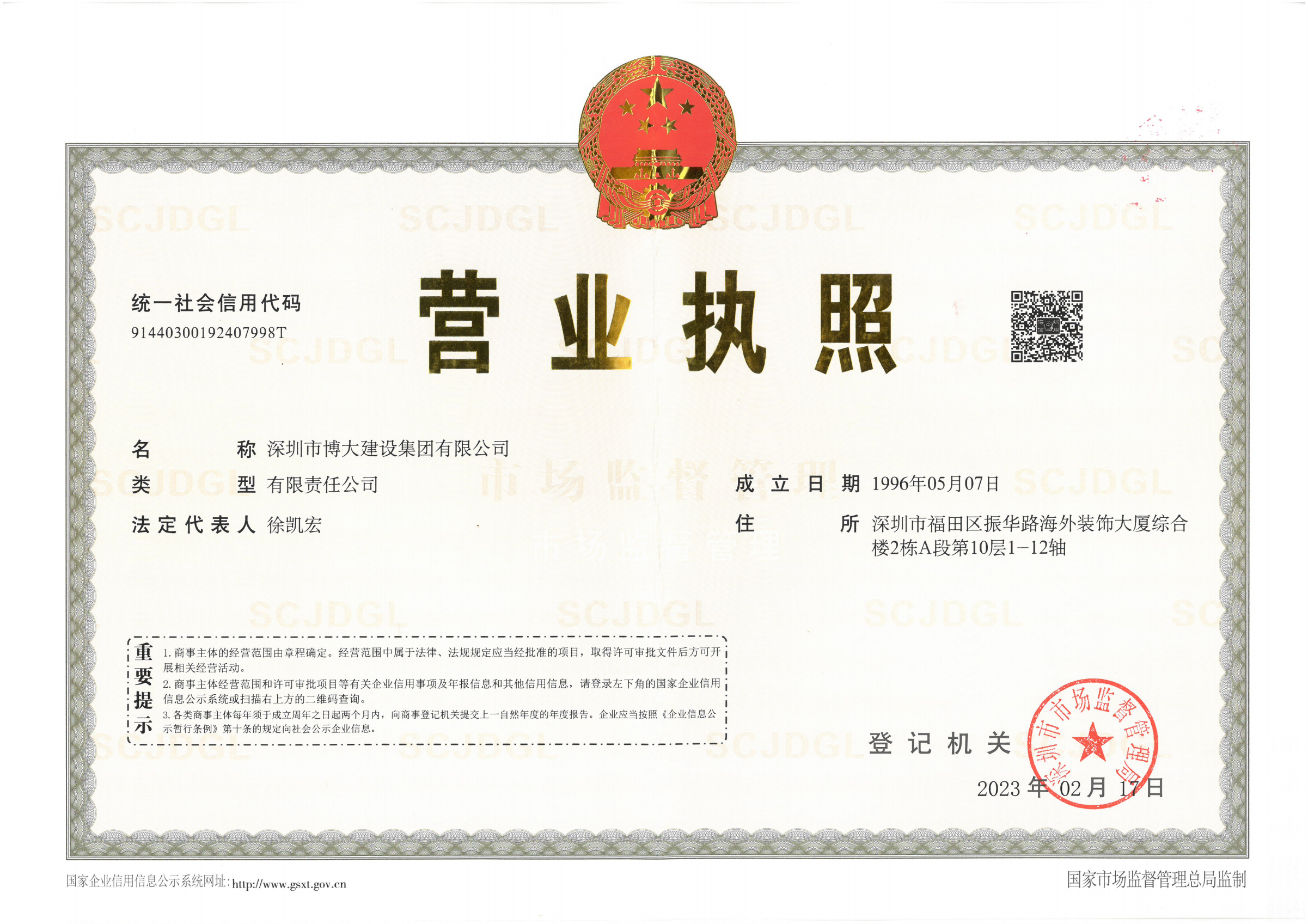 徐凱宏1991年7月畢業(yè)于東北師范大學(xué),政治教育專業(yè),獲法學(xué)學(xué)士學(xué)位。1991年開始在深圳市公務(wù)監(jiān)察局工作,1996年開始操盤深圳市博大裝飾工程有限公司(博大前身)。