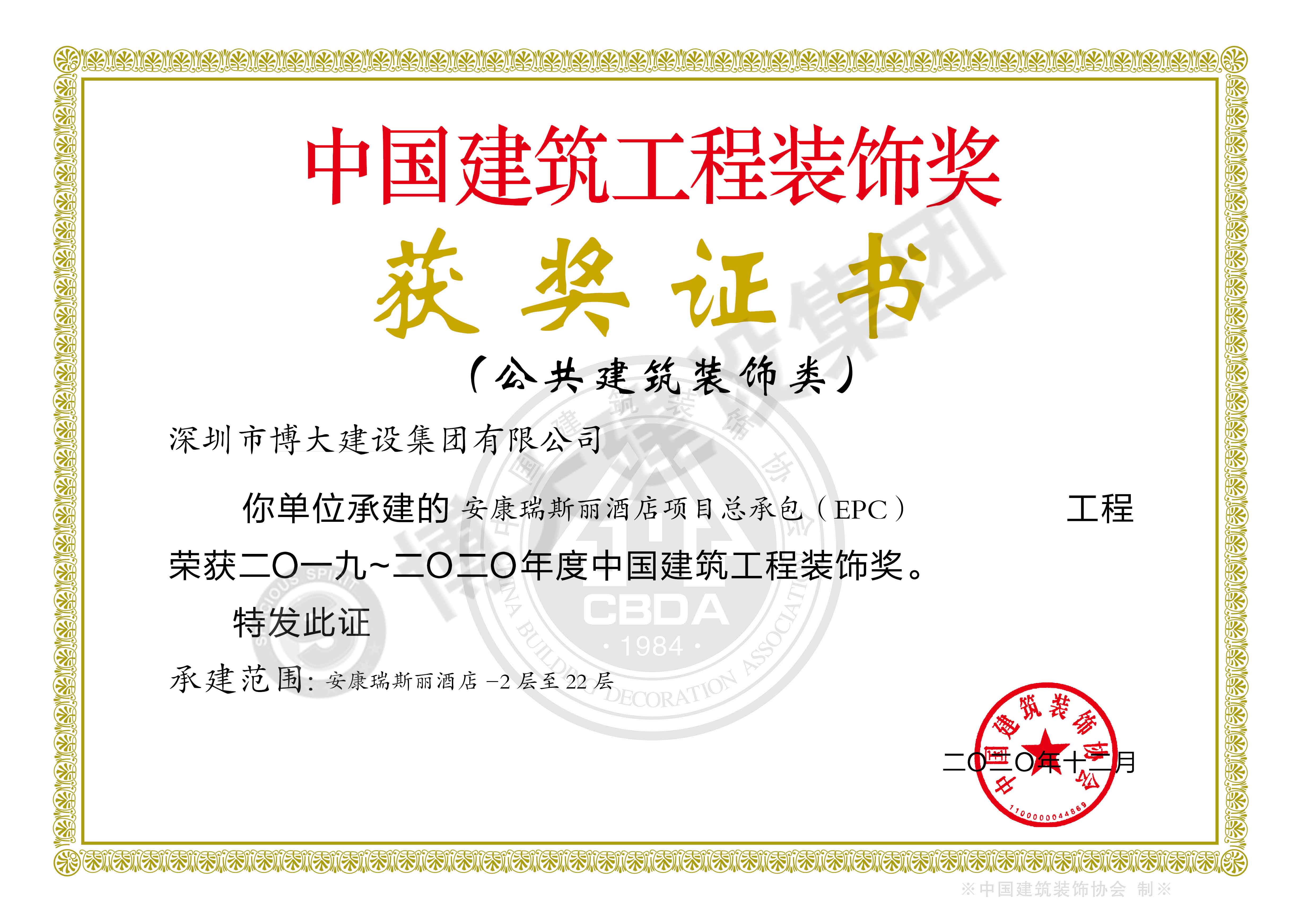中國建筑工程裝飾獎(安巒公館幕墻施工)